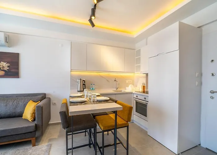Midpoint Suites zijn voorzien van gratis privéparkeerplaatsen en Wi-Fi en liggen in de Hisaronu wijk van Fethiye. Op 3-km afstand van het appartement ligt het Strand van Oludeniz.